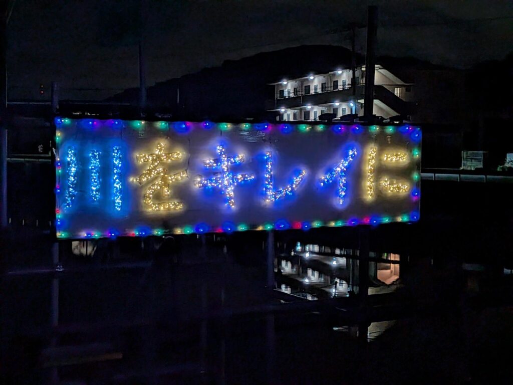 2026.01.30 ✨川をきれいに✨ 皆さんこんにちは!寒い日が続いていますね⛄ 現在施工中の長与川工事にて、現場にイルミネーションを設置しました。 そこまで大きくは無いですが、ネオンカラーがとても可愛く存在感があります💗 近くを通られた際には是非一度、チラ見してみてください👀✨